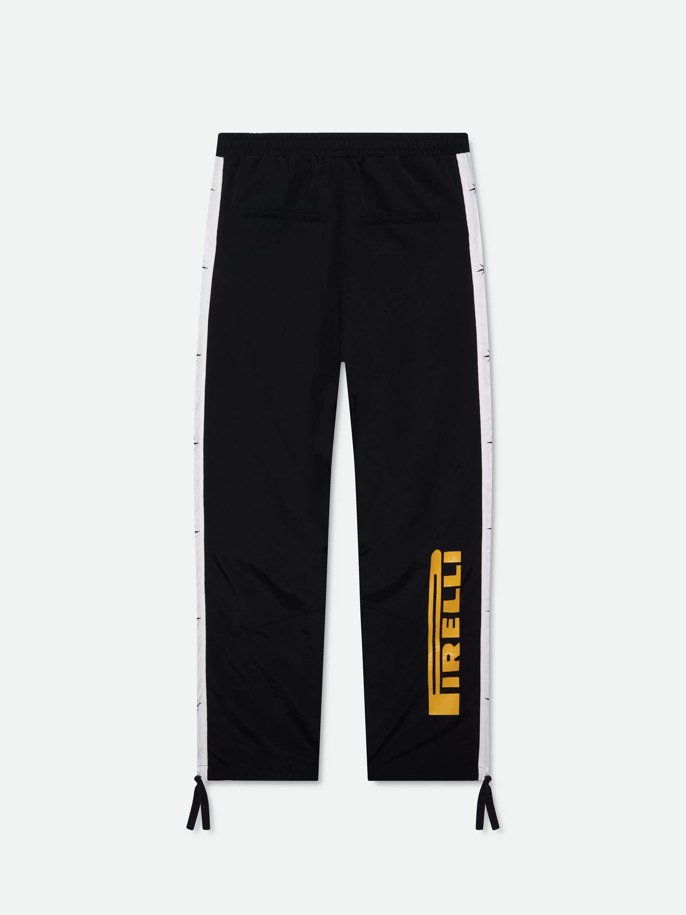 Our classic track pant features co-branded Rhude classic logo on front, Pirello logo on back, while white stripes and stars contrast the front and back of legs.